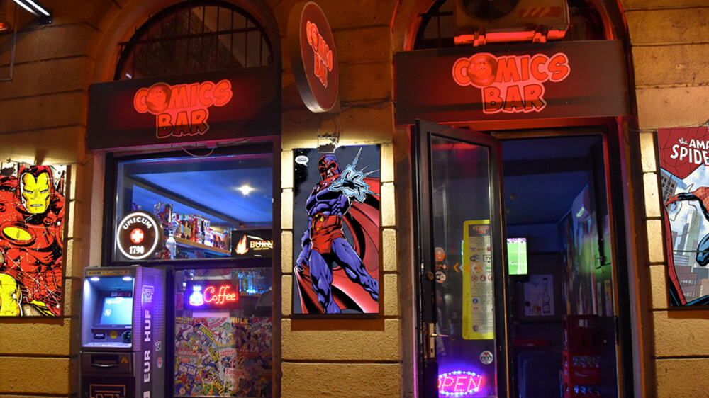 A Comics Bar tökéletes menedék azoknak, akik imádják a Marvel és a DC univerzumot, vagy egyszerűen csak egy különleges atmoszférájú helyre vágynak. A falakról Pókember, a Galaxis őrzői és Hulk figyelik, ahogy a vendégek élvezik a családias légkört és a nagyszerű italokat. A szórakozás itt sosem áll meg: rendszeres kocsmakvízek, karaoke partyk és élő sportközvetítések pörgetik fel az estéket.